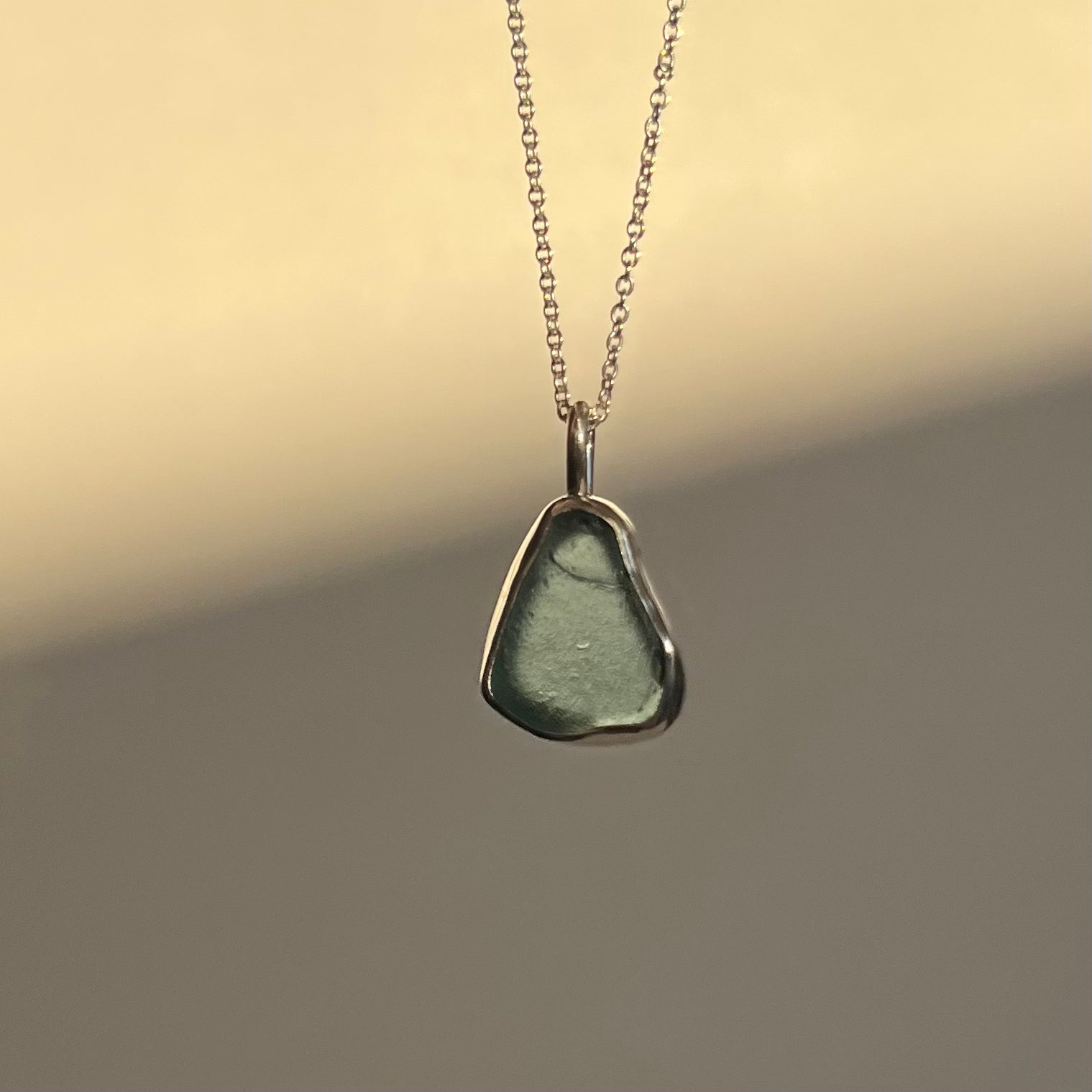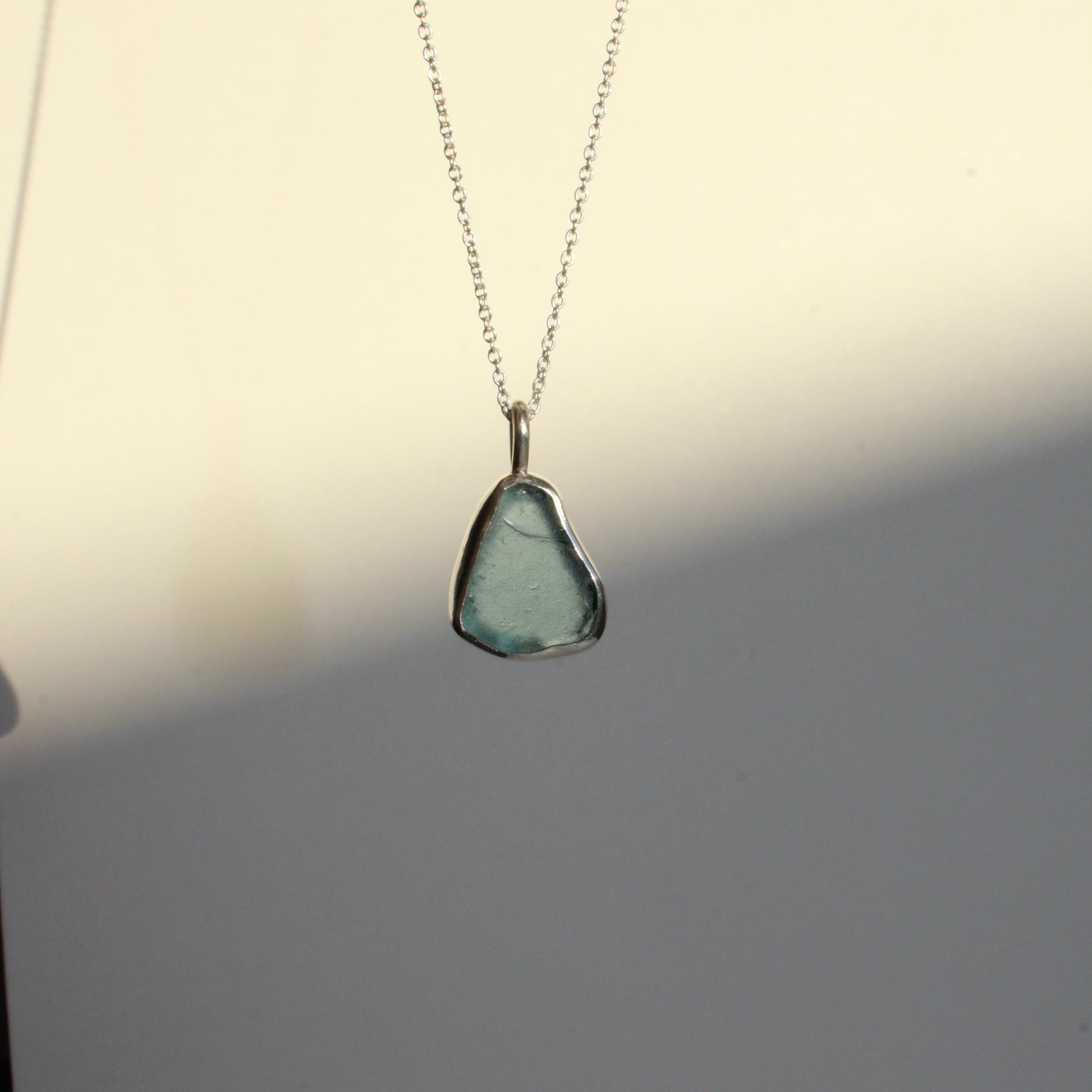 Blue sea glass in sterling silver