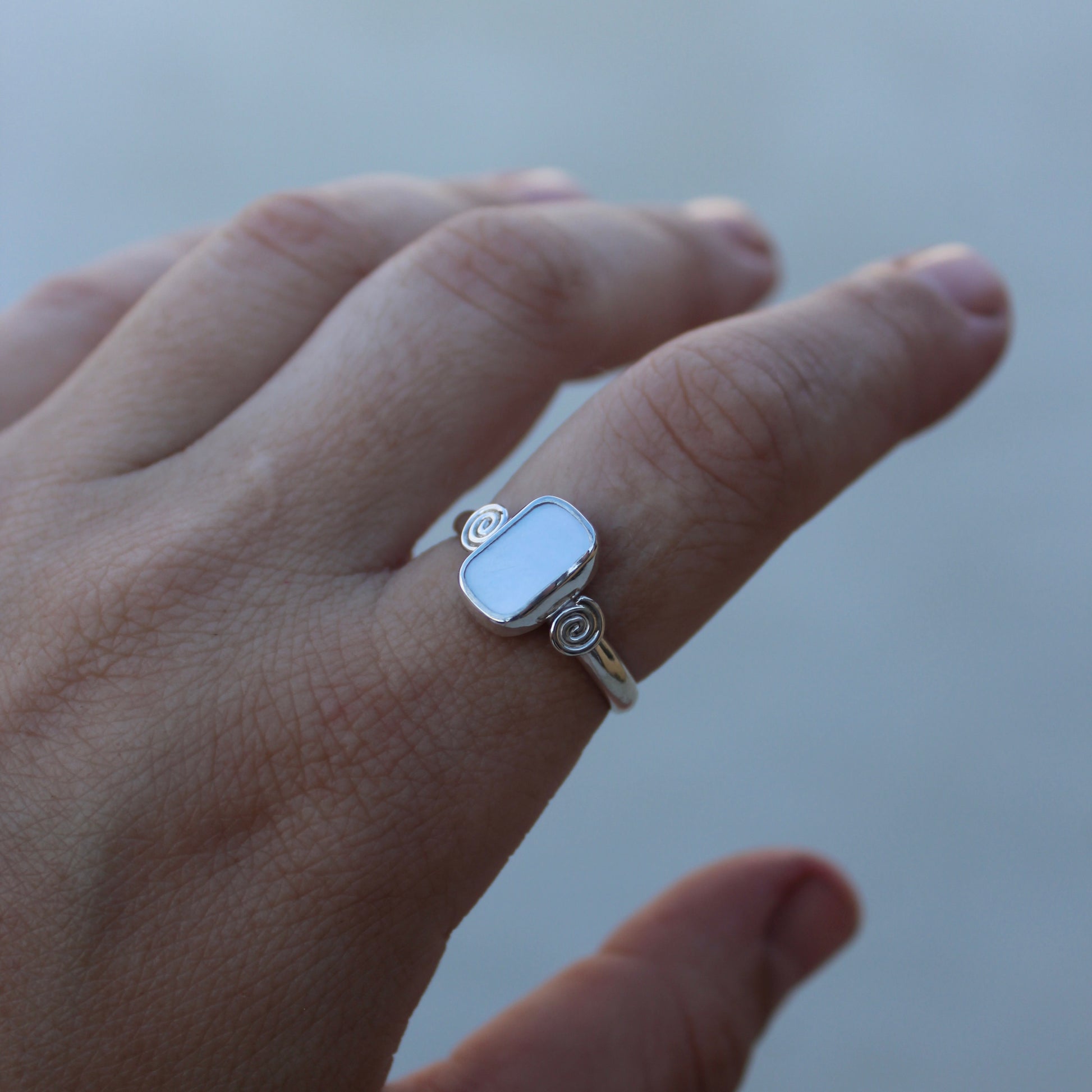 Hand cut Mother of Pearl in sterling silver, with swirly details